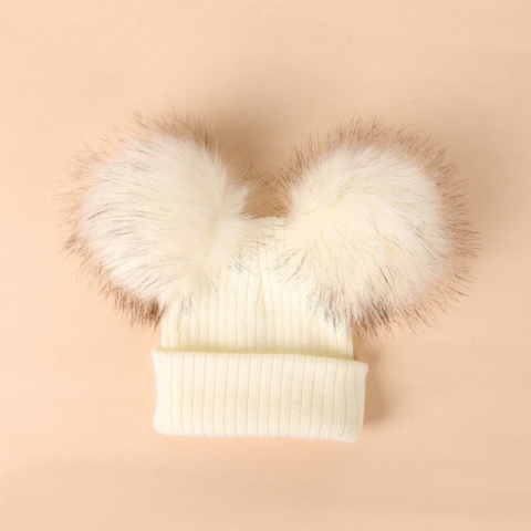 2025 Super Schattig 2 Kleuren 3-24 Maanden Baby Baby Kunstmatige Dubbele Pompom Hoed Met Strik Sieraden Kleding Accessoires
