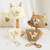 Bestverkochte Fabriek Cartoon Cat Design Stro Hoed Uv Bescherming Voor Meisjes Komt Draagbare Handtas Voor Reizen Vissen Buiten
