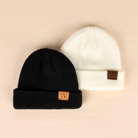 कारखाने कस्टम लोगो डिजाइन गर्म आरामदायक बच्चे बुना हुआ हैट्स का समर्थन करता है जिसके साथ यात्रा के लिए w लोगो चमड़े के पैच पैटर्न प्रकार पत्र